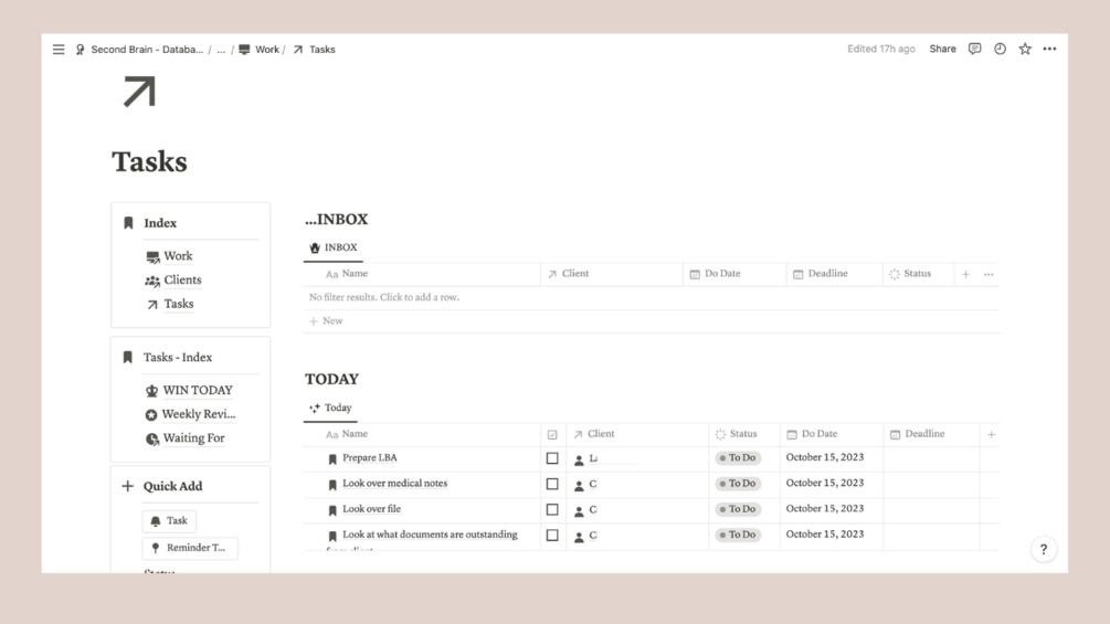 - Individual client pages containing client specific deadlines, tasks and status updates